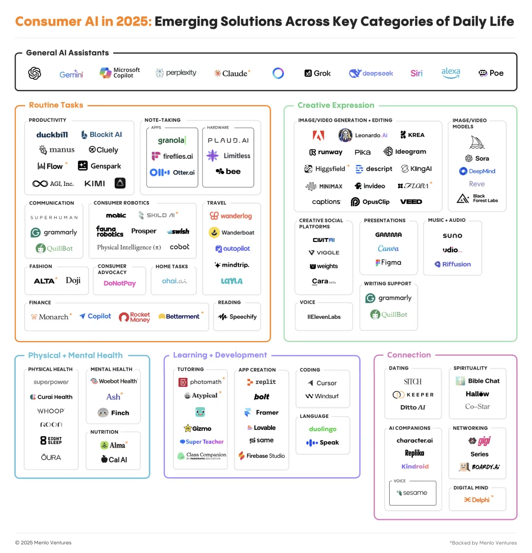 硅谷风投契构 Menlo Ventures 正在《2025年消费级AI现状演讲》中指出!